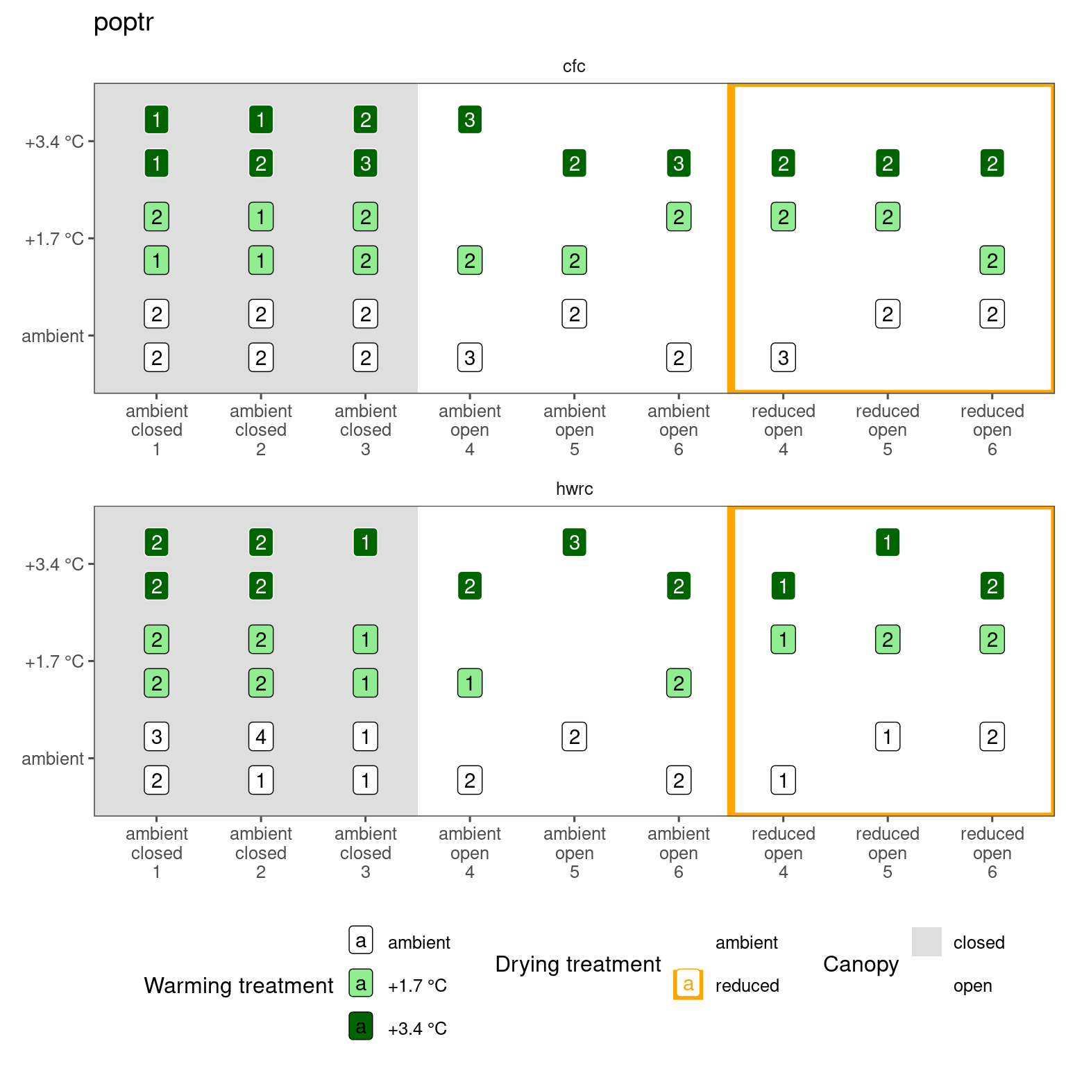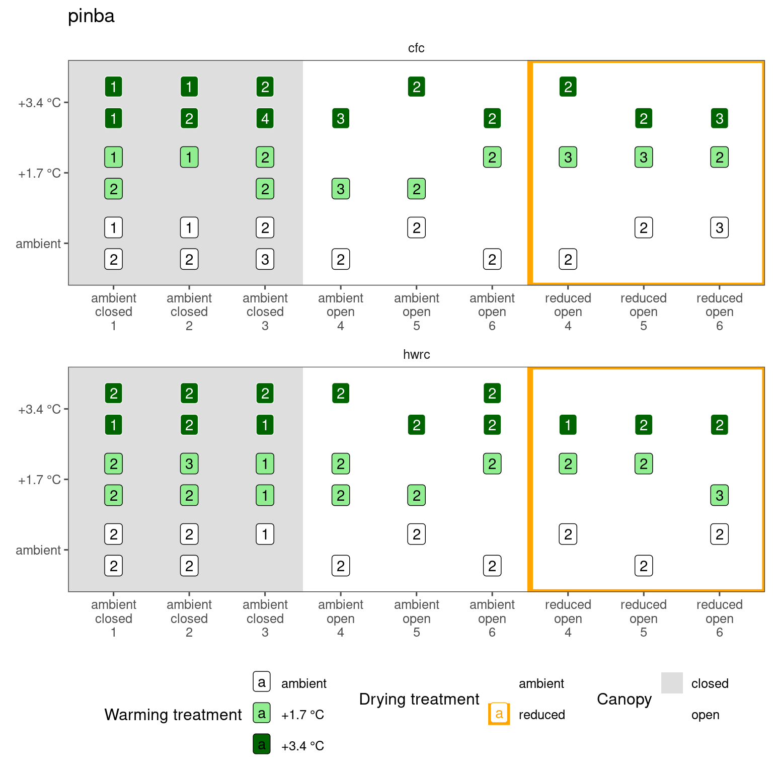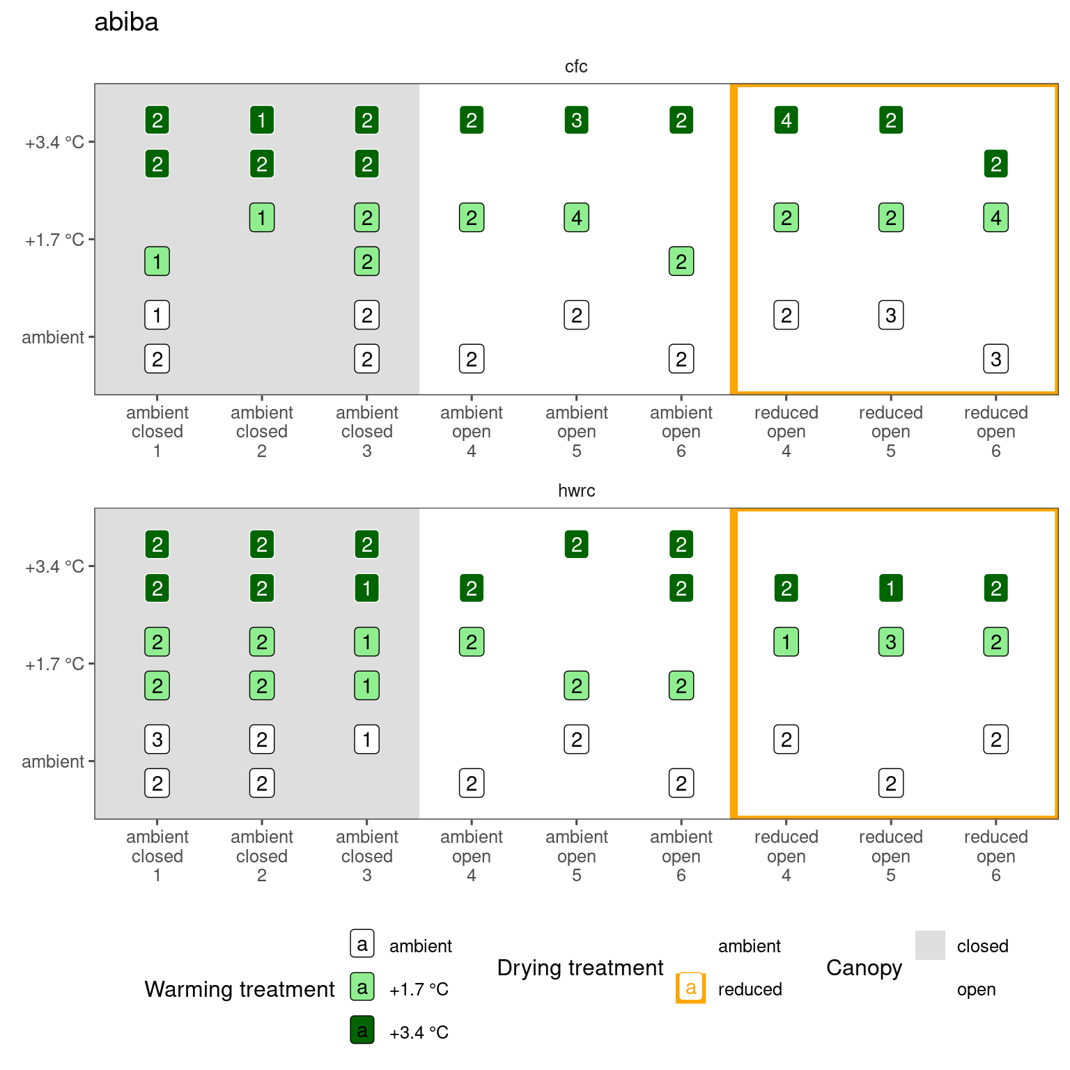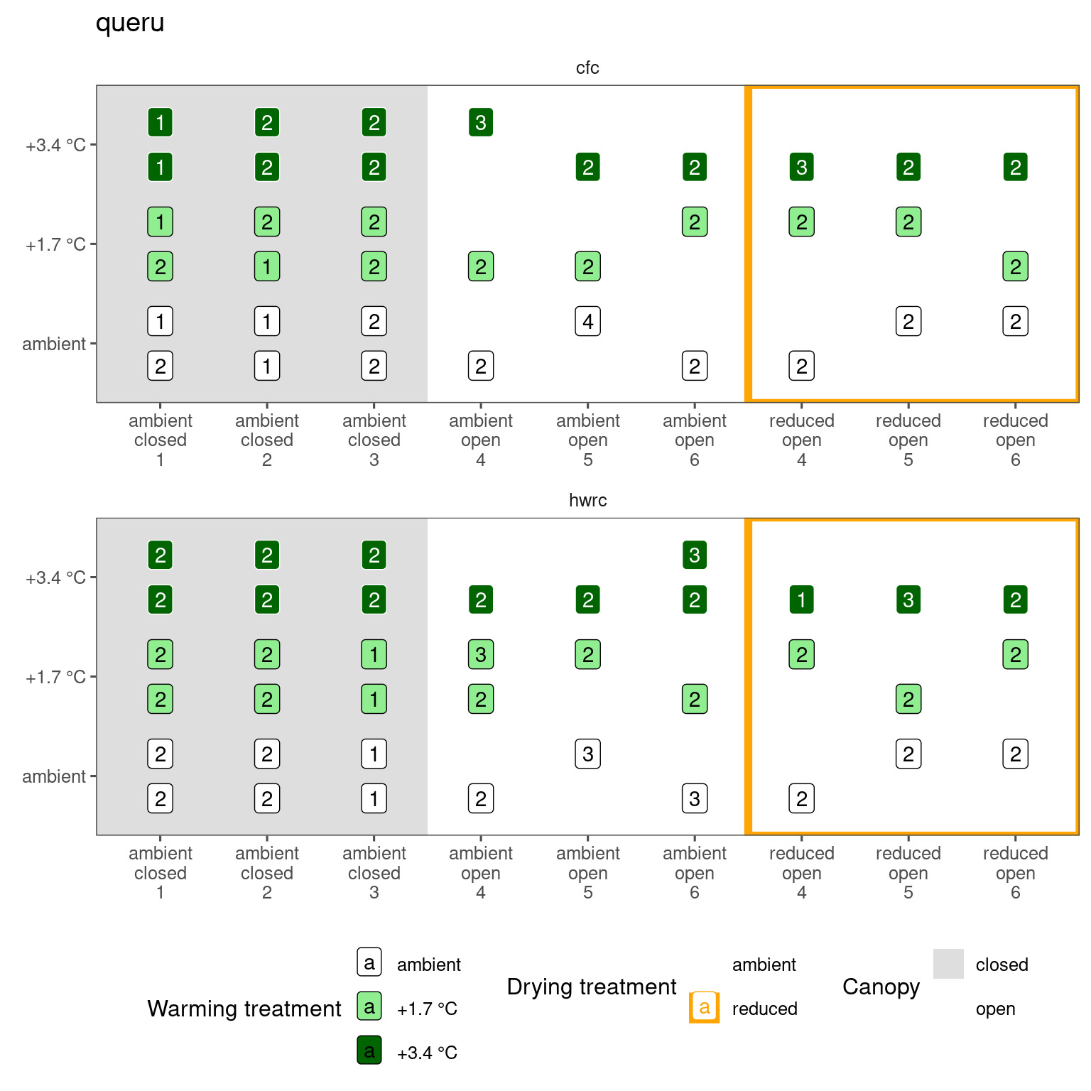These figures illustrate the maximum number of individual plants sampled within a species, site, year, treatment, block, and plot. The purpose are to 1) visualize study design, 2) clarify sample size, and 3) spot potentially problematic data.