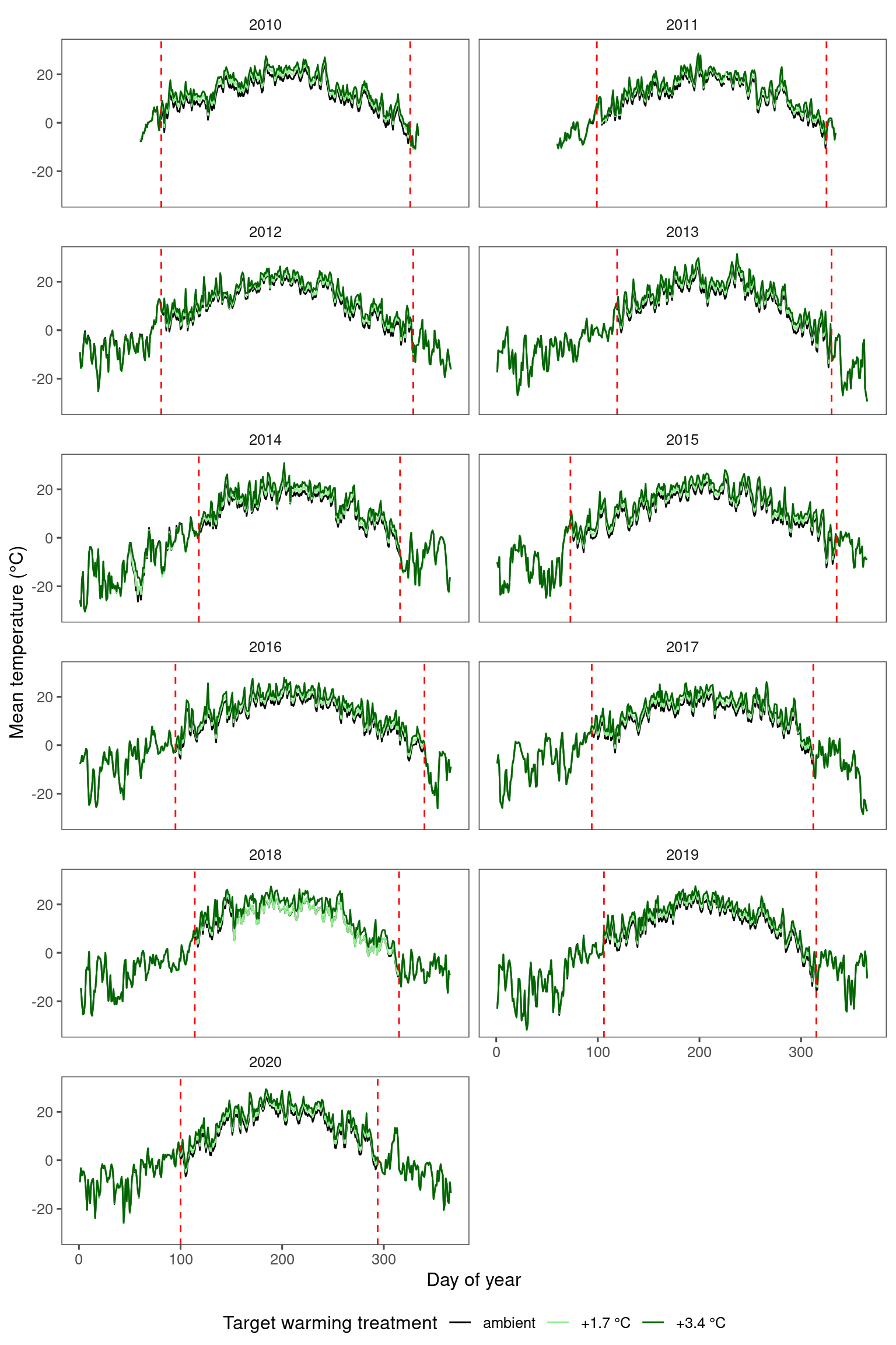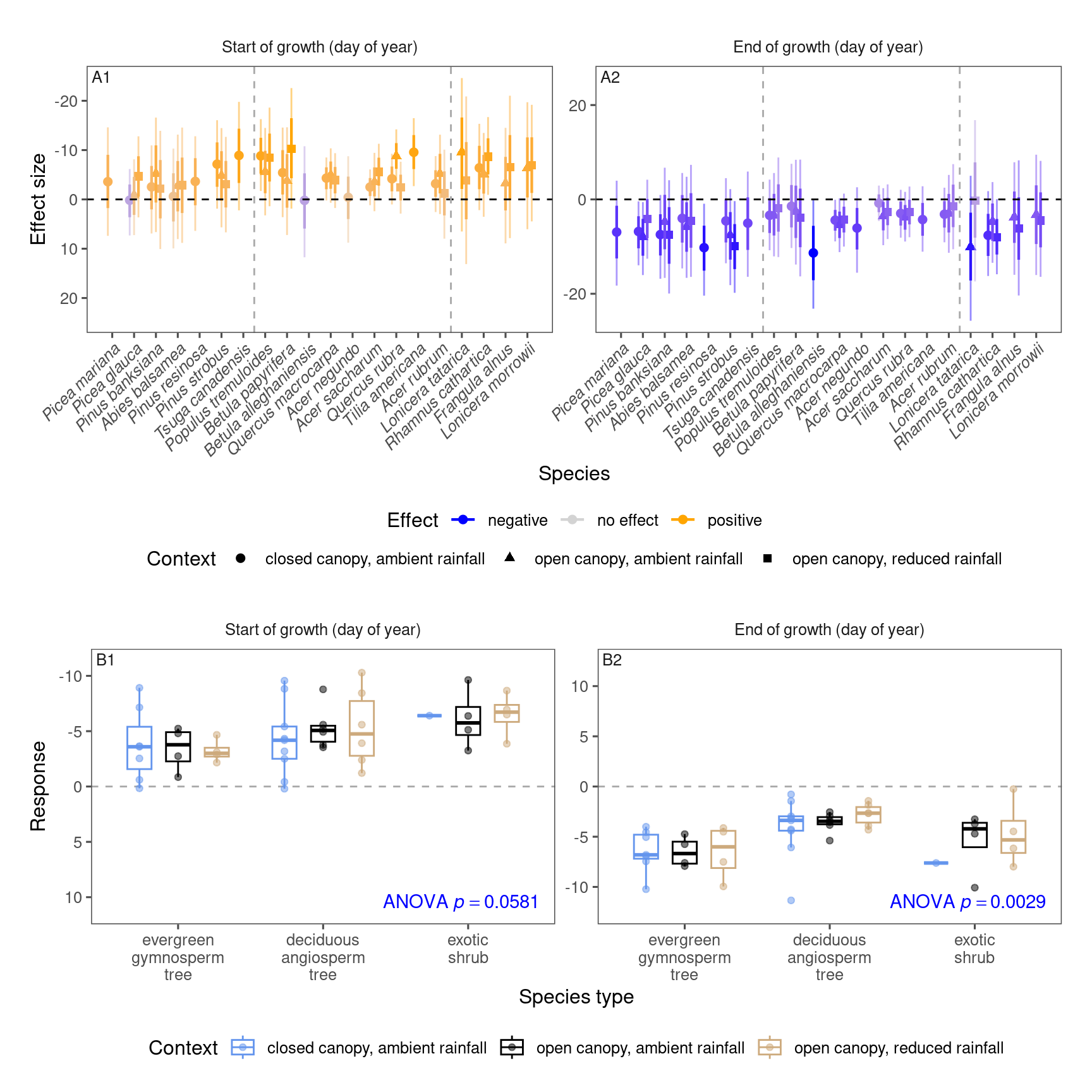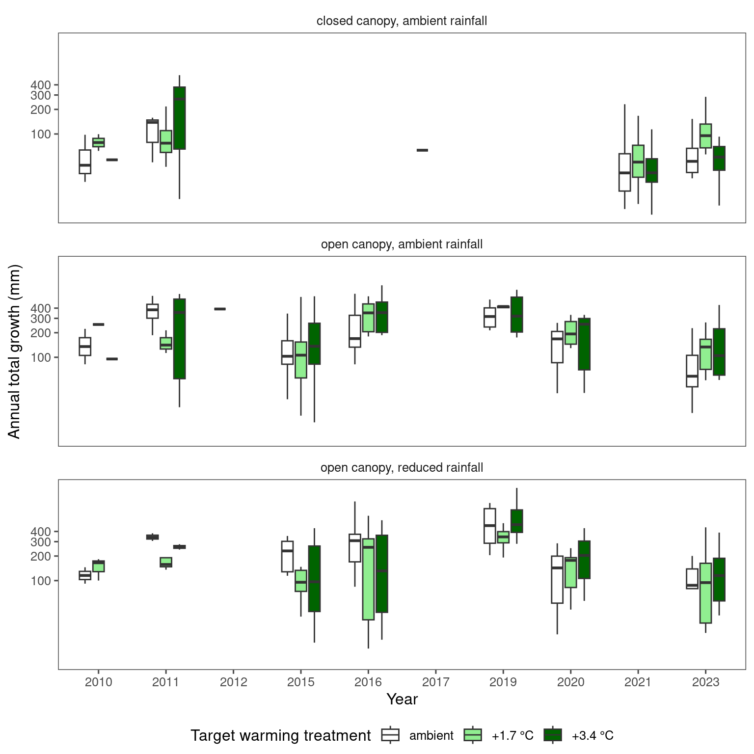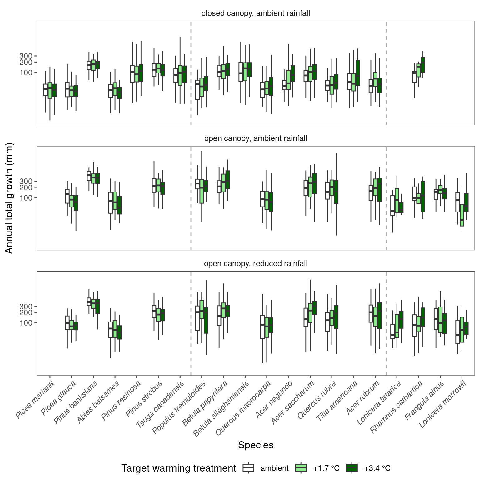 target warming treatment | rainfall treatment | canopy | difference in | difference in |